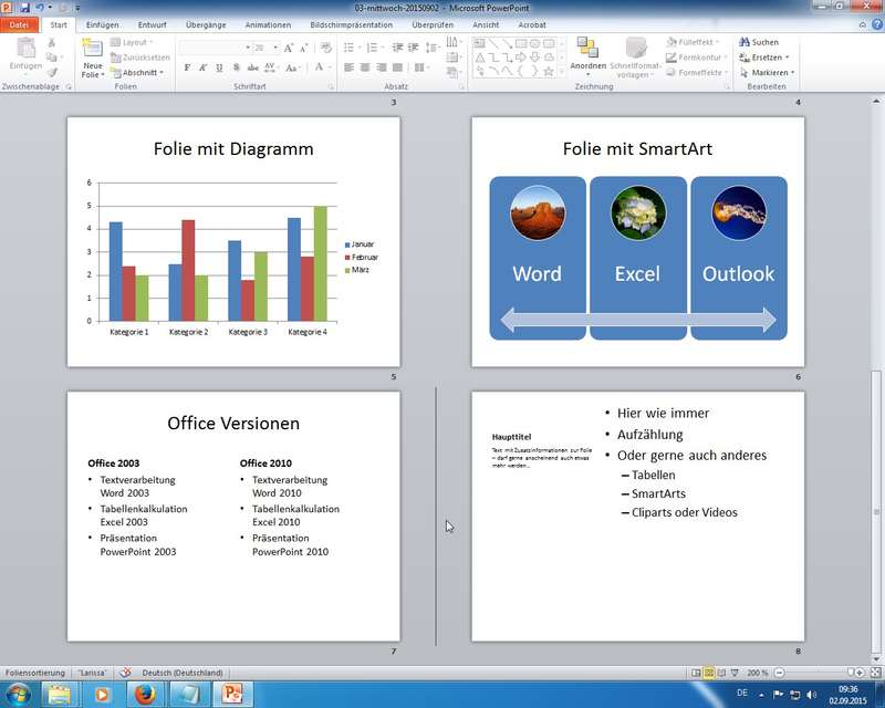 Aufzählungen, Gliederungen, Einbindung von Bildern/Grafiken, Formatvorlagen - Tag 3: PowerPoint 2010 - Folienerstellung und –gestaltung, Folienübergänge, Animationen