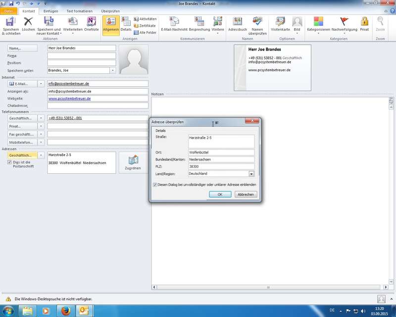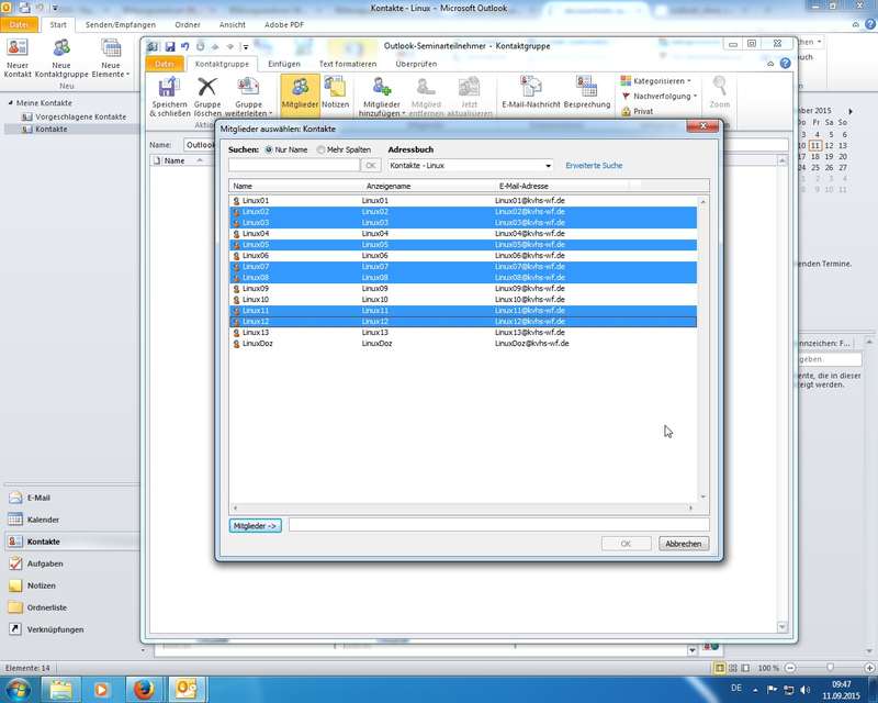 Praxis mit Outlook-Kontakten: