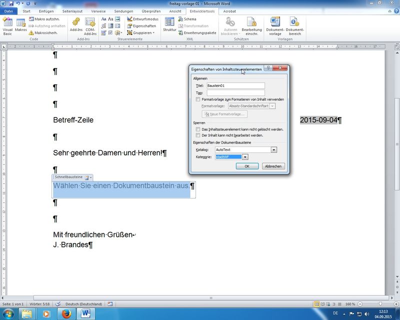 Tipp: bitte AutoTexte in Kategorien organisieren, dann lassen sich die erstellten Bausteine effektiver nutzen