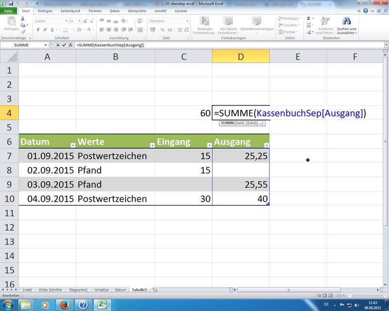am Beispiel SUMME(); Eingabe mittels Maus und/oder Tastatur