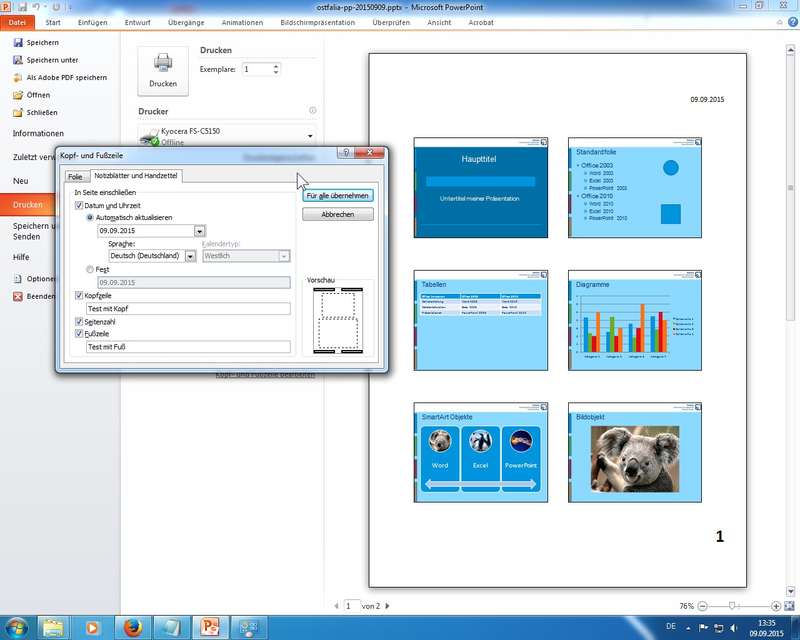 Übung: mit PowerPoint 2010 im abwärtskompatiblem *.ppt Format; Hinweis auf Kompatibilitätsprobleme
