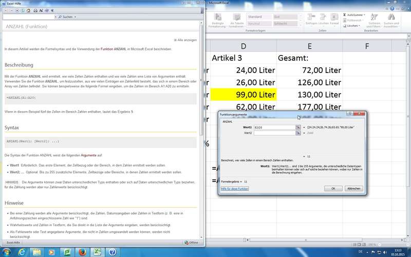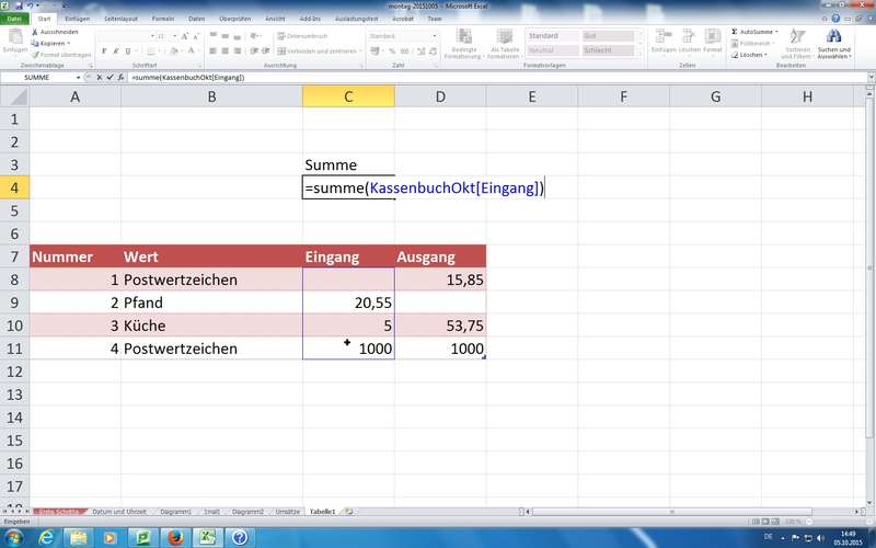 am Beispiel SUMME(); Eingabe mittels Maus und/oder Tastatur