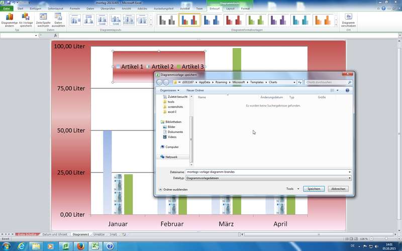 effektive neue Diagrammvorlagen möglich; Formatierungen und speichern von Diagramm-Vorlagen in Standardverzeichnis Charts der Template-Office-Struktur, siehe neue/eigene Ribbons Diagrammtools (Entwurf, Layout, Format) beachten - Funktionen