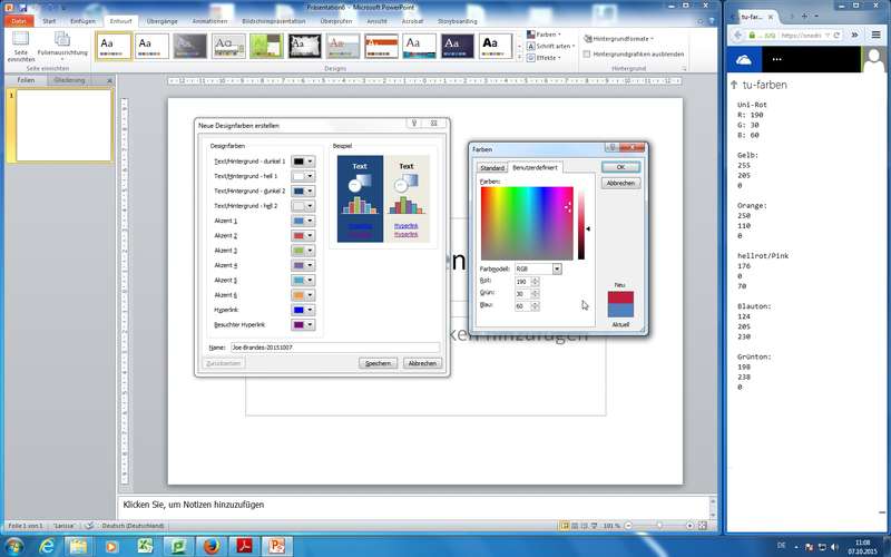 Die TU Braunschweig besitzt ein festes CI / CD (Corporate Identity / Corporate Design), welches alle zu nutzenden Farben sauber vordefiniert! - Farben