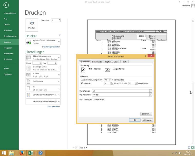 Manuelles Festlegen der Druckbereiche mittels Ribbon Seitenlayout; Schnelle Ausdrucksoptimierung druch Hoch-/Querformat wechseln - Kommentare