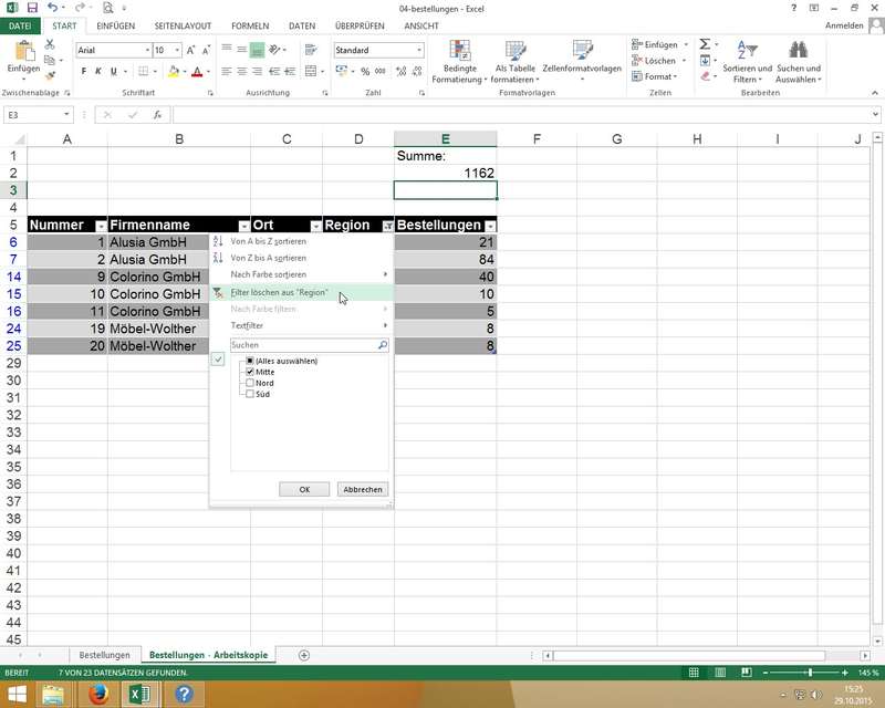 Wichtige Erkenntnis: beim Filtern von Daten werden zwar in Tabellen die nicht zutreffenden "Datensätze" ausgeblendet, aber eine Summe über eine Datenspalte berechnet weiterhin die Gesamtsumme (also ohne Filter!)