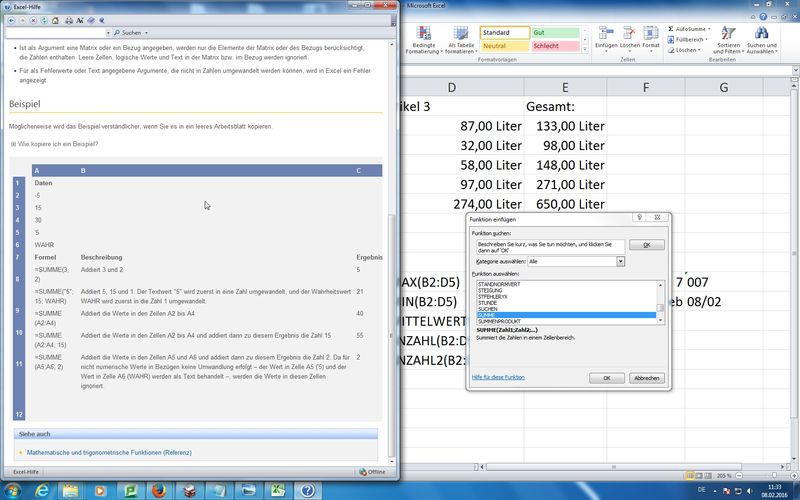 am Beispiel SUMME(); Eingabe mittels Maus und/oder Tastatur