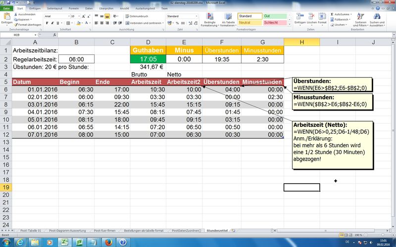 Effizientes Arbeiten mit Uhrzeiten und Formaten für eine Stundenzettel / Arbeitszeiten - Bedingte Formatierung