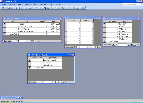 Relationen zwischen Tabellen, am Ende 4 Tabelle (siehe Diashow/Downloads unten) - Download: