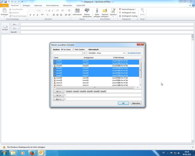 in Seminar gezeigt: Outlook nutzt für das Erstellen von Kontakten, Terminen, Mails jeweilige Standard-Formulare!