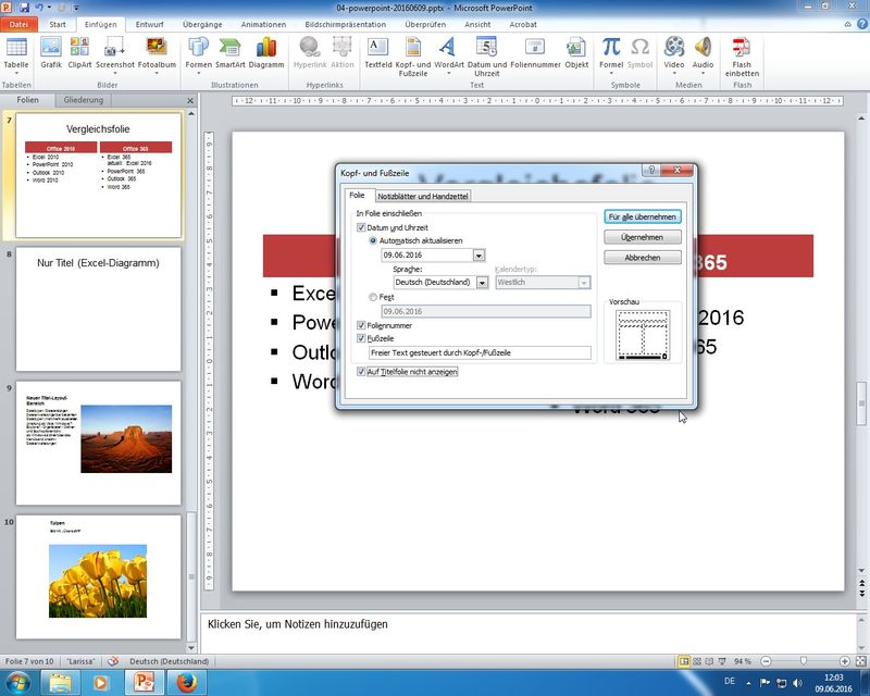 Arbeiten mit Vorlagen und Formatvorlagen; Serienbrief und Steuerdatei - Tag 4: PowerPoint 2010 - intensiv