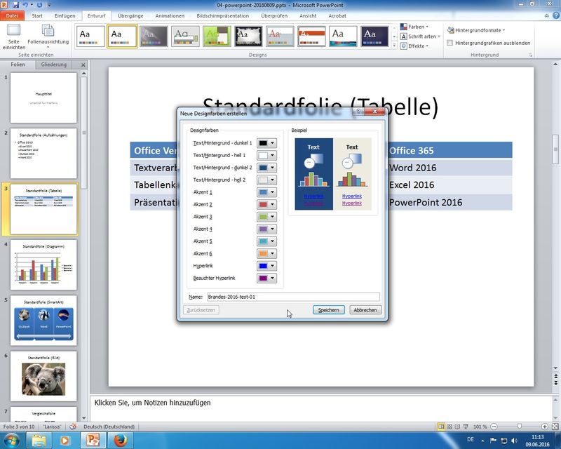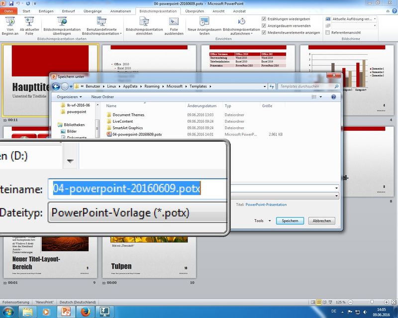 beispielhaftes Speichern einer "fertigen" Präsentation (Farben, Design, Notizen, Inhalte) als Präsentationsvorlage