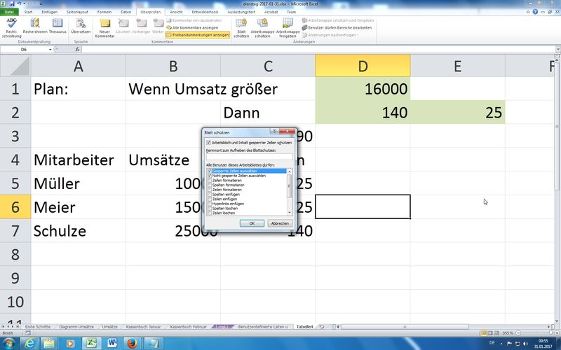 Tipp: mit Cursor an Zellbezug und Druck auf F4 automatische $ - Übung mit Prozentualem Umsatz