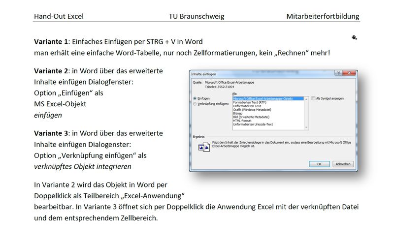 3) Inhalte einfügen... - Verknüpfen Excel Objekt