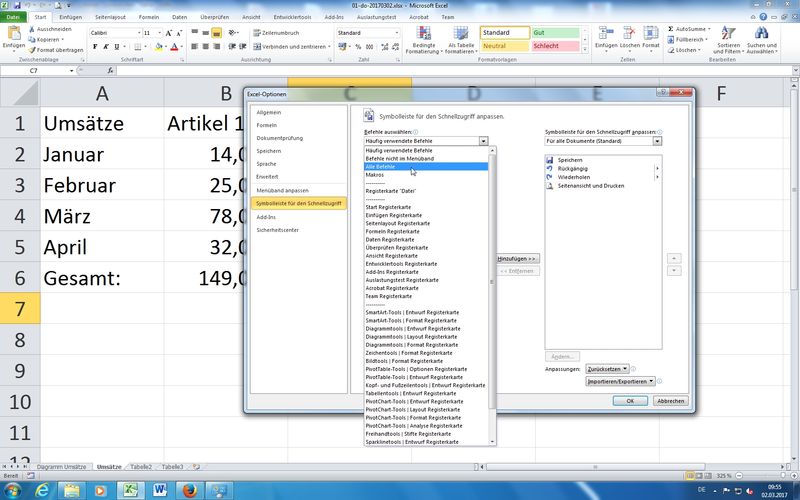 Vergabe von Tastenkombination und Symbol in Schnellzugriffsleiste (oben links)
