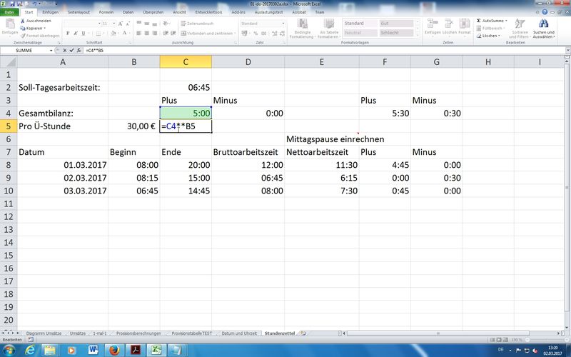 Zeiten/Pausenregelungen; Hinweis auf Hand-Out (Download folgt) - Arbeitsoberfläche ab Excel 2007 / 2010 / 2013 / 2016 / Office 365