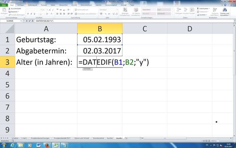 Praxis mit Excel-Tabelle: