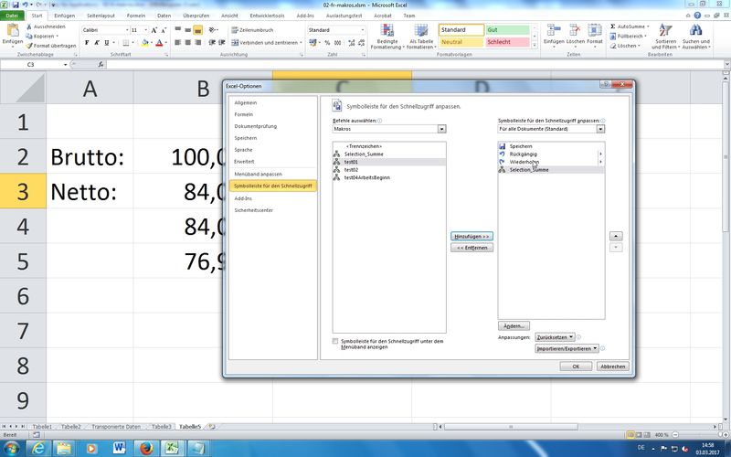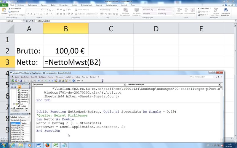 manuelles Einfügen von Sub Routinen (Makros) oder Function (neue eigene Funktionen; Beispiel: NettoMwst)