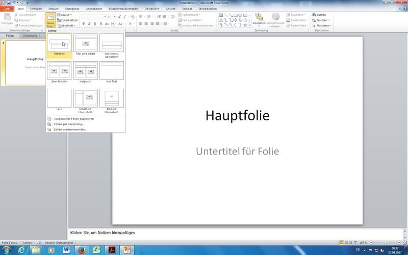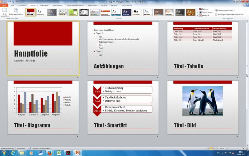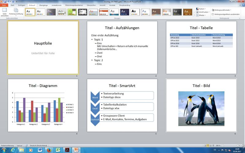 Anm.: dasselbe Prinzip bei Word (*.doc vs. *docx) oder Excel (*.xls vs. *.xlsx) - Inhalte in Folien eingeben