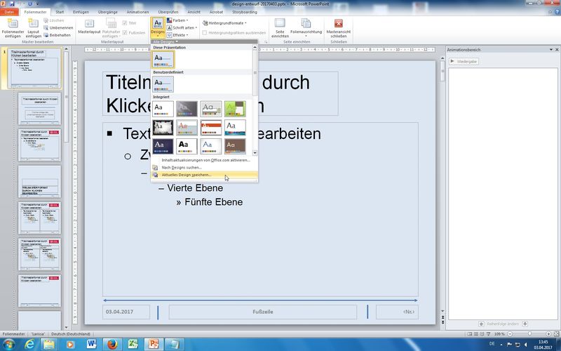 beispielhaftes Speichern einer "fertigen" Präsentation (Farben, Design, Notizen, Inhalte) als Präsentationsvorlage