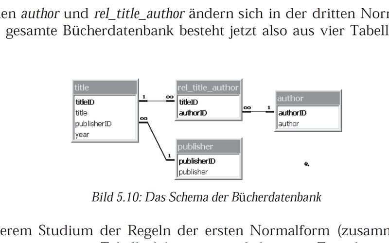 Erstellung von sogenannten Normalformen ergibt dann Relationen zwischen Tabellen,