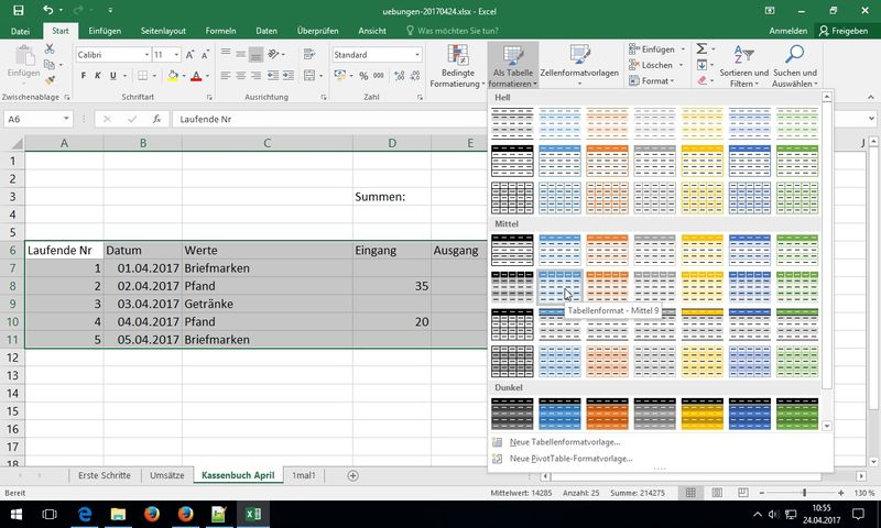 - Tag 1 - Mo. 24.04.2017 - Excel 2016