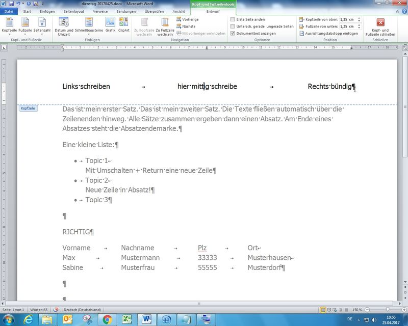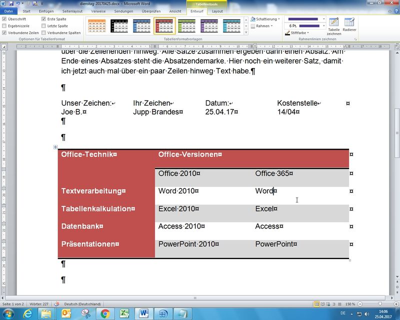- Tag 1 - Di. 25.04.2017 - Word 2010