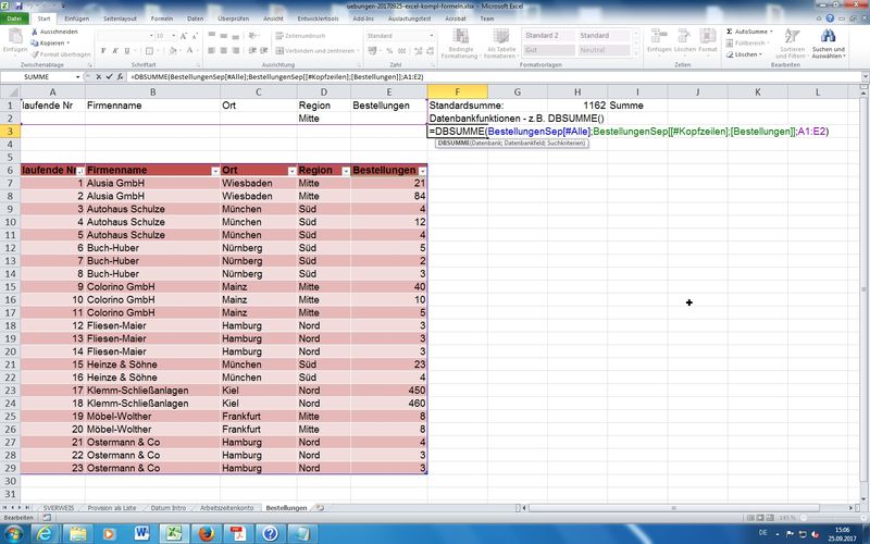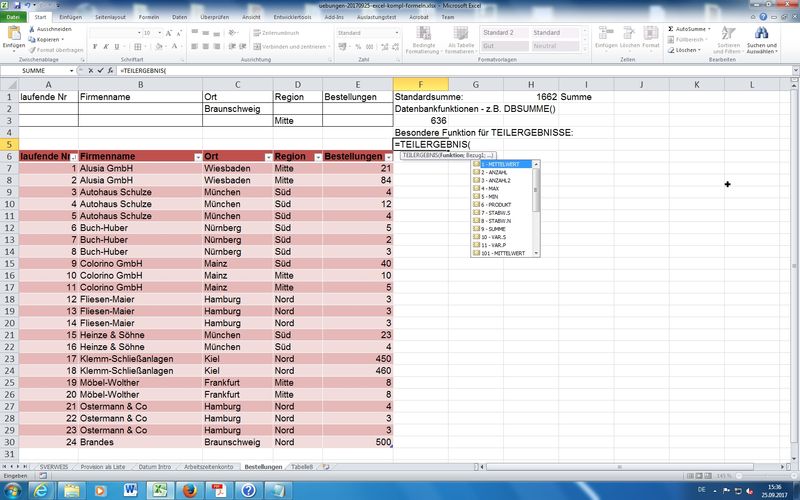 Wichtige Erkenntnis: beim Filtern von Daten werden zwar in Tabellen die nicht zutreffenden "Datensätze" ausgeblendet, aber eine Summe über eine Datenspalte berechnet weiterhin die Gesamtsumme (also ohne Filter!) - TEILERGEBNIS-Funktion