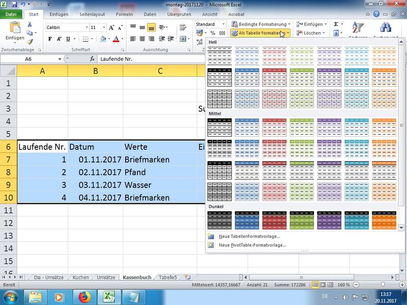 - Tag 1 - Mo. 20.11.2017 - Excel 2010