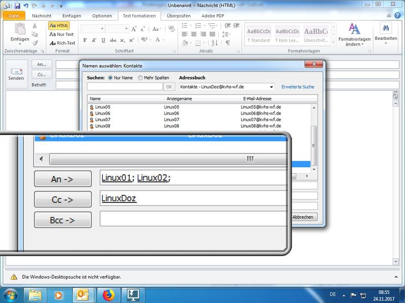 Nachmittag: Vertiefung... - Tag 5 - Fr. 24.11.2017 - Outlook (bis 12.00 Uhr)