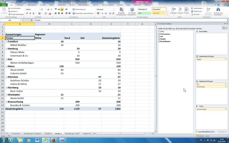 Hinweis: beim Ändern der Datenbereiche für die PivotTable muss man diese manuell aktualisieren