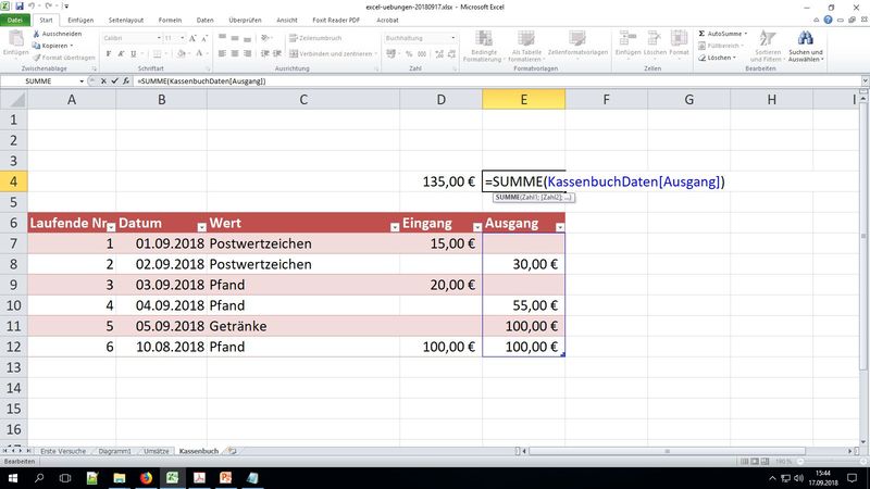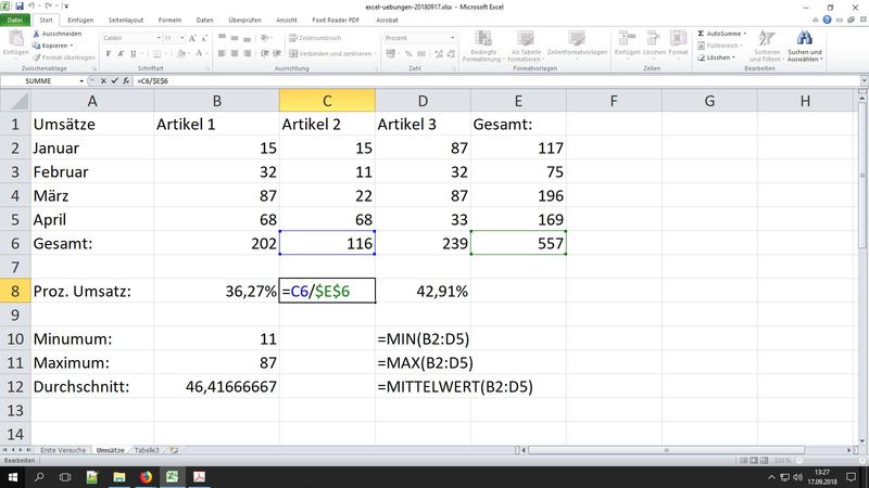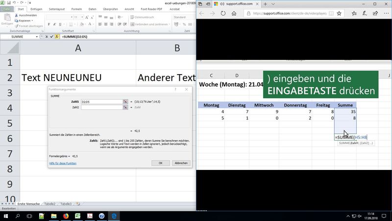am Beispiel SUMME(); Eingabe mittels Maus und/oder Tastatur