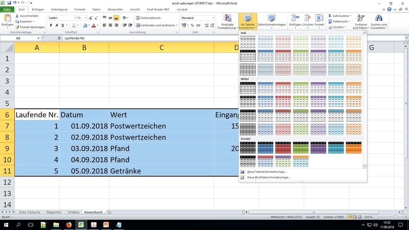 bei Bereichen und Strg + "Plus" erscheint zusätzliches Menü - Zellformate
