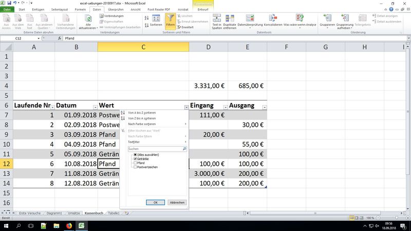 Anm./Feedback: Konzentration aus "Basics" - Sortieren und Filtern