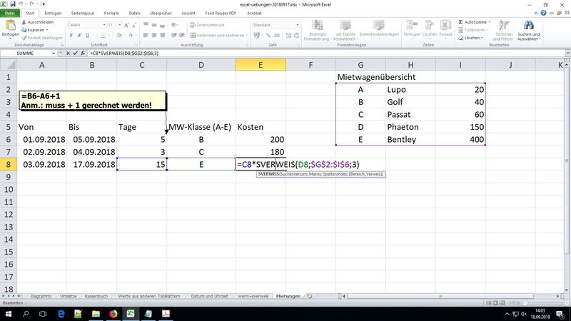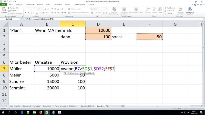 Nutzung von Zellen für Vergleichswerte in Prüfungen und für Berechnungen in den Dann/Sonst-Zweigen verlangen wieder nach den absoluten Zellbezügen, damit sich die Funktionen auch sauber kopieren lassen (nach unten ziehen lassen) - SVERWEIS Funktion