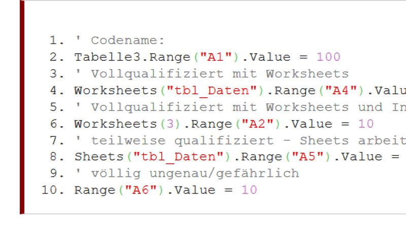 Varianten zum Ansprechen eines Tabellenblatts:{code lang:freebasic showtitle:false lines:true hidden:false}' Codename: