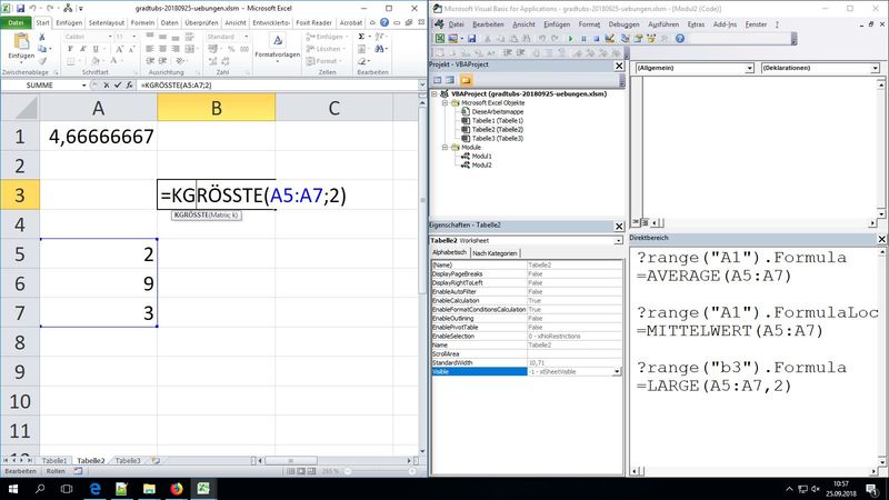 Übung: Funktionsnamen im Englischen Original ermitteln - wie heißt die Funktion MITTELWERT() ??range("A1").Formula
