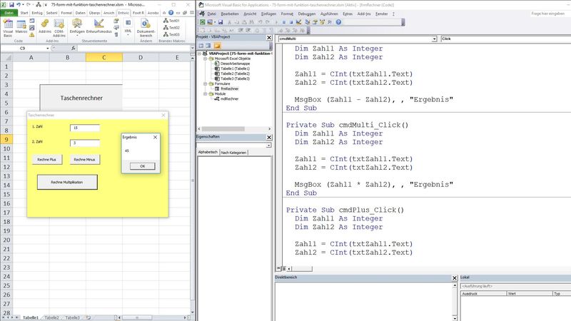 Beispiele für Sub / Prozeduren: cmdMulti_Click() oder txtZahl1_Exit()