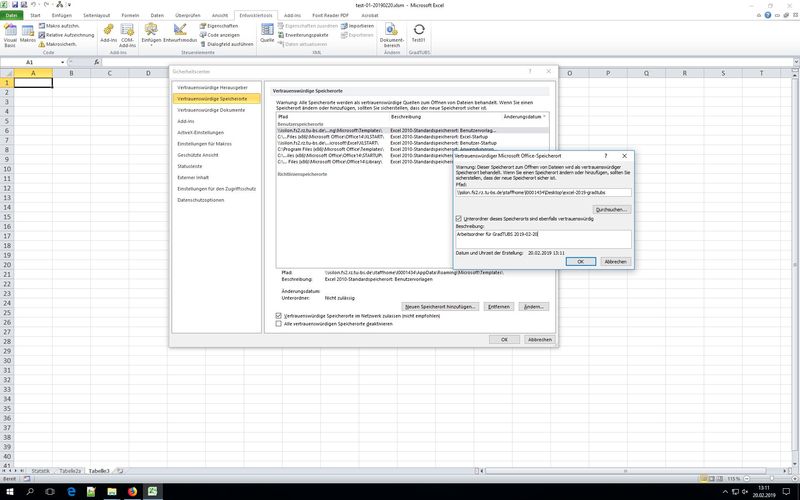 Darstellung der wichtigsten Optionen und Zusammenhänge; Übung für Vertrauenswürdige Speicherorte (inkl. Netzwerk)