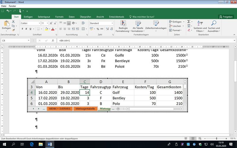 | 1 - Mo | 02.03.2020 | Excel | Grundlagen | Ausstieg zur Mittagspause möglich |