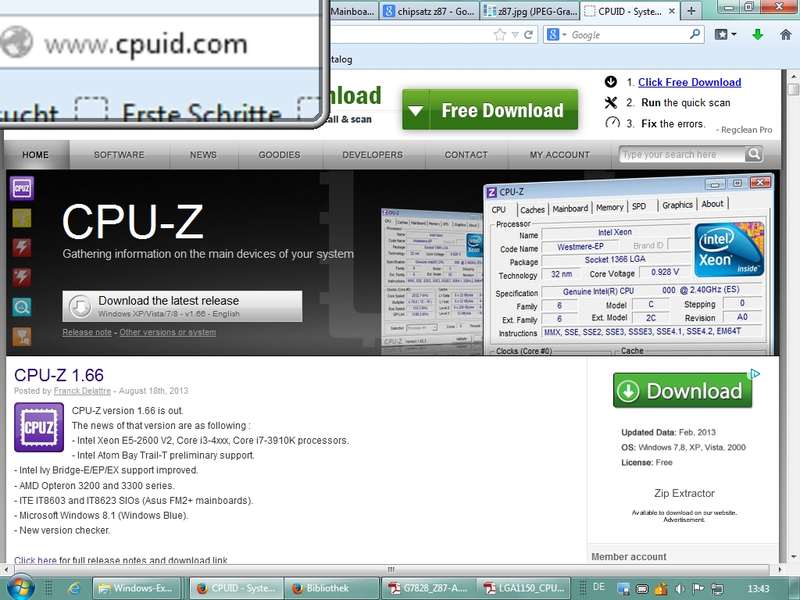CPU-Z (www.cpuid.com) - Register nachrecherchiert;