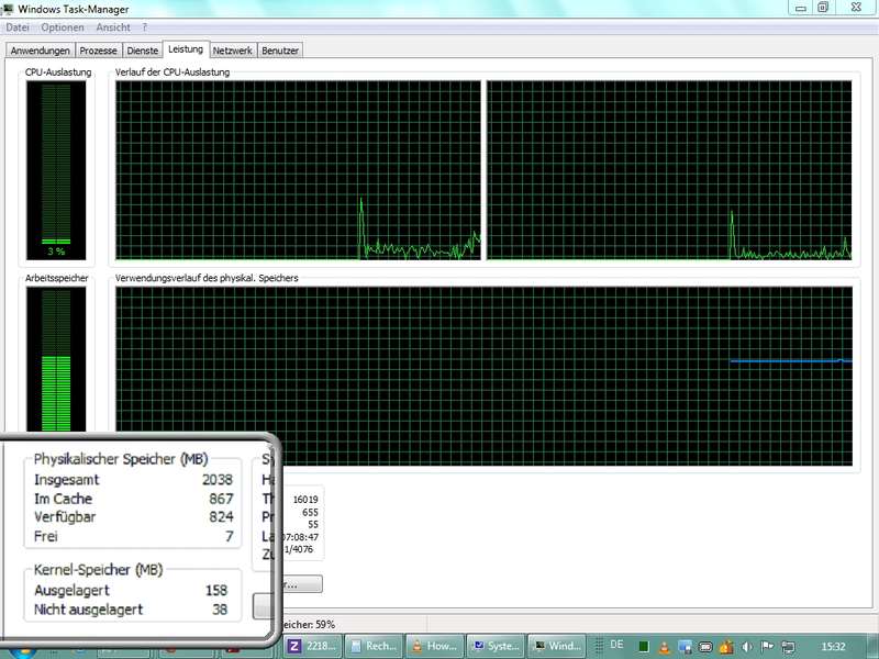 Übung: mittels Systenübersicht (Win + Pause) Vergleich der verbauten RAM-Größe (Speichergröße) mit dem tatsächlichen Speicher (MB) mittels des Task-Managers (z.B. Rechte Maus auf Taskleiste oder mittels altem "Affengriff" Strg + Alt + Entf) ermitteln ob MBs für "Grafik-RAM" abgezwackt werden