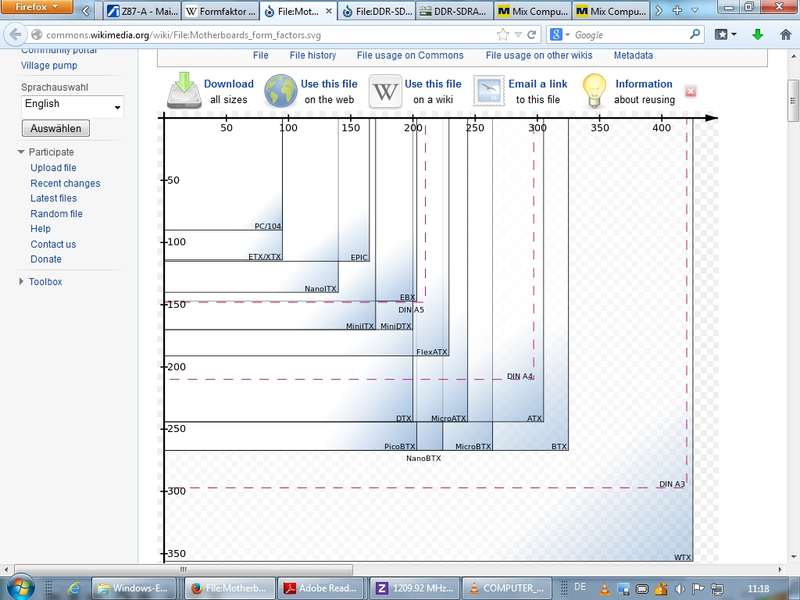 ATX (mit verkleinertem Standard Micro/µ-ATX), Abmessungen siehe Wikipedia-Artikel (Link),