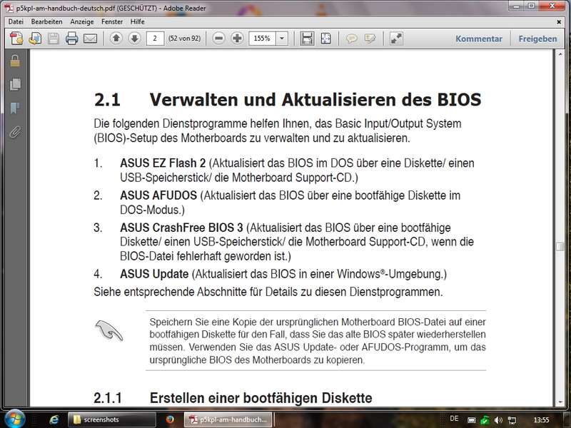 Übung: eigenes TN-System analysiert (Asus P5KPL-AM; Downloads/Manuals bereitgestellt; Prozessor E2200 @ 2.2 GHz)