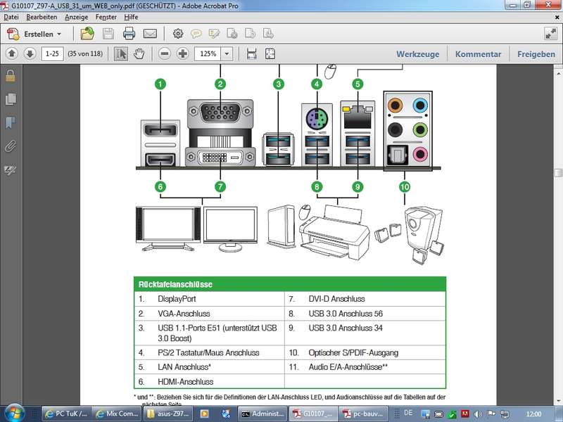kleine Übung: Zuordnung von Schnittstellen "Rückseite MB P8H61-M LE/USB3" - Schnittstellen (Teil II - intern)