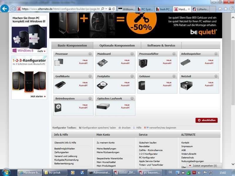 anhand von c't Artikeln (aktuell 2015 Link) und mit Hilfe von Online-PC-Konfiguratoren (siehe alternate.de) - Musterprüfung / Prüfungsvorbereitung