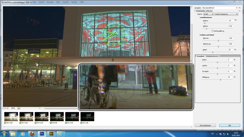 Nutzung von HDR Pro Werkzeug (über die Bridge) - Hinweis auf 16-Bit / 32-Bit Dialoge und das Entfernen von Geisterbildern - Inhaltsbasiertes Füllen (und Skalieren)