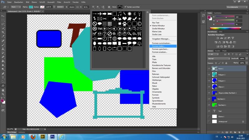 Formen: Nutzung von Formen (Werkzeug U) für vektororientiertes Arbeiten