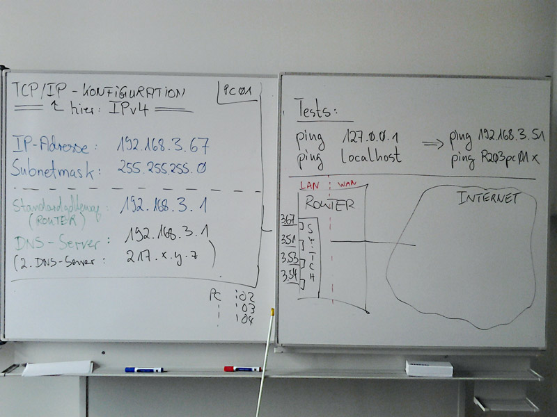 IP-Adresse, Subnetmask, Standardgateway (Router), DNS-Server