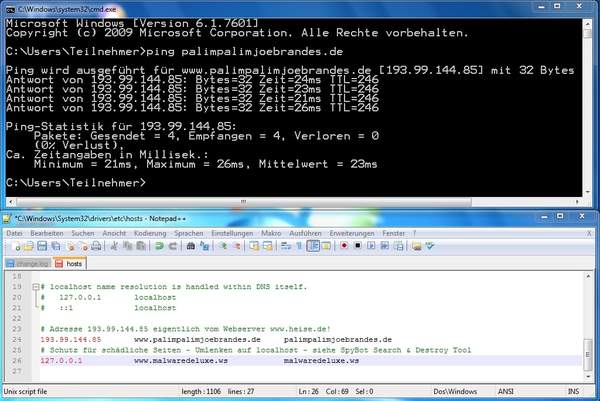über bestimmte Internet-Portale und Tools Heise - Netze - DNS-Abfrage)